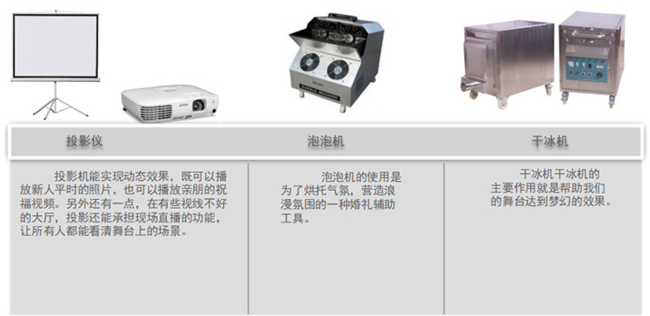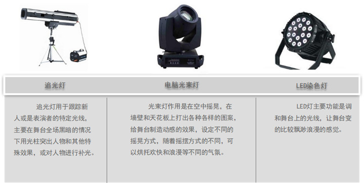 包括:舞臺搭建、燈光音響、LED大屏、場地布置、LED染色燈、電腦搖頭燈、光束燈、 追光燈、干冰機(jī)、雪花機(jī)、煙霧機(jī)、彩虹機(jī)、啟動球、搖獎箱、銅鑼、禮花、鞭炮、冷焰火、氣柱等等)
