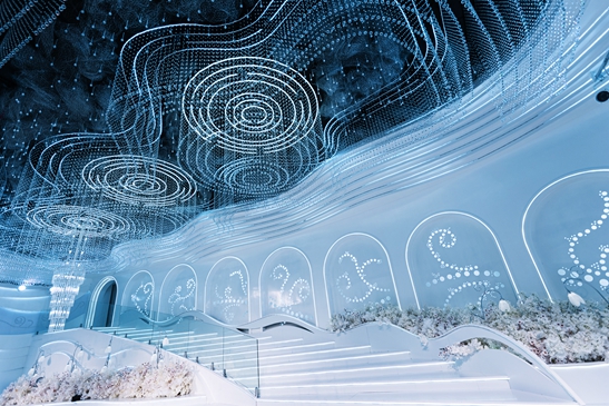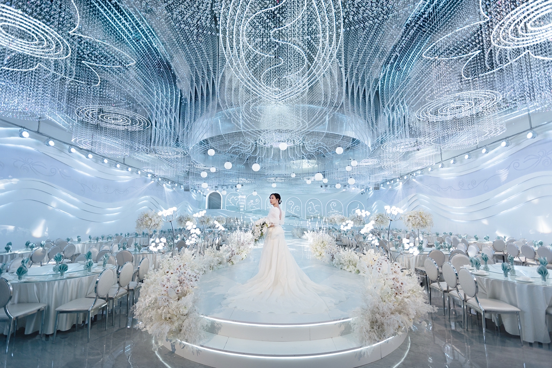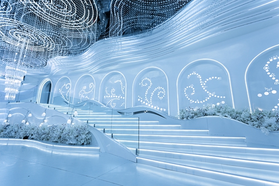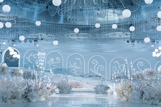 只通過材料與燈光的切割對婚禮進行詮釋。