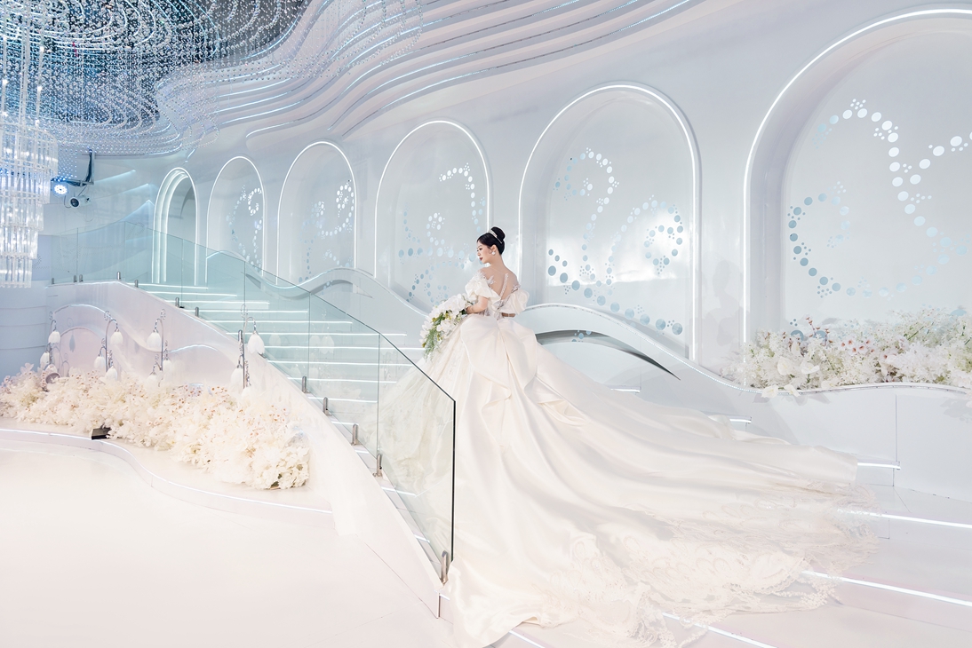 而這一次,我們用了白的布景去表現(xiàn)婚禮,